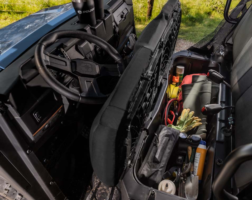 - Gas Assist Dump Box, Single Latch Tailgate, Rear-mounted Fiberglass Insulated Exhaust System, Standard In-dash SAE Charge Port, 575 CCA Battery, 660W Charging System (Stator), 20.25 Gal. Onboard Storage with Enclosed Dash Bins and Integrated Cell-phone Holder, Sealed Suspension Bushings and Wheel Bearings, Full Coverage Steel Front Bumper with Integrated Winch and Plow Mounts, Full Coverage Skid Plate, Premium Body Panels, Premium Cut & Sew Seats, Polaris Pulse Electrical System (3 position), Polaris HD 3,500 Lb. Synthetic Rope Winch with Autostop and In-Dash Switch, Premium Pro-Shield Cab, Doors with Crank Windows, Integrated Door Storage, Fixed Glass Windshield with Wiper and Washer Fluid, Rear Glass Panel, Factory Installed Heat with Defrost, Upper and Lower Dash Vents and Variable Fan Speed, USB Charging Port, Front Stabilizer Bar, Rear Wheel Liners, NorthStar Badging, Factory-installed cab system with doors with crank windows, integrated door storage, fixed glass windshield with wiper and washer fluid, rear glass panel